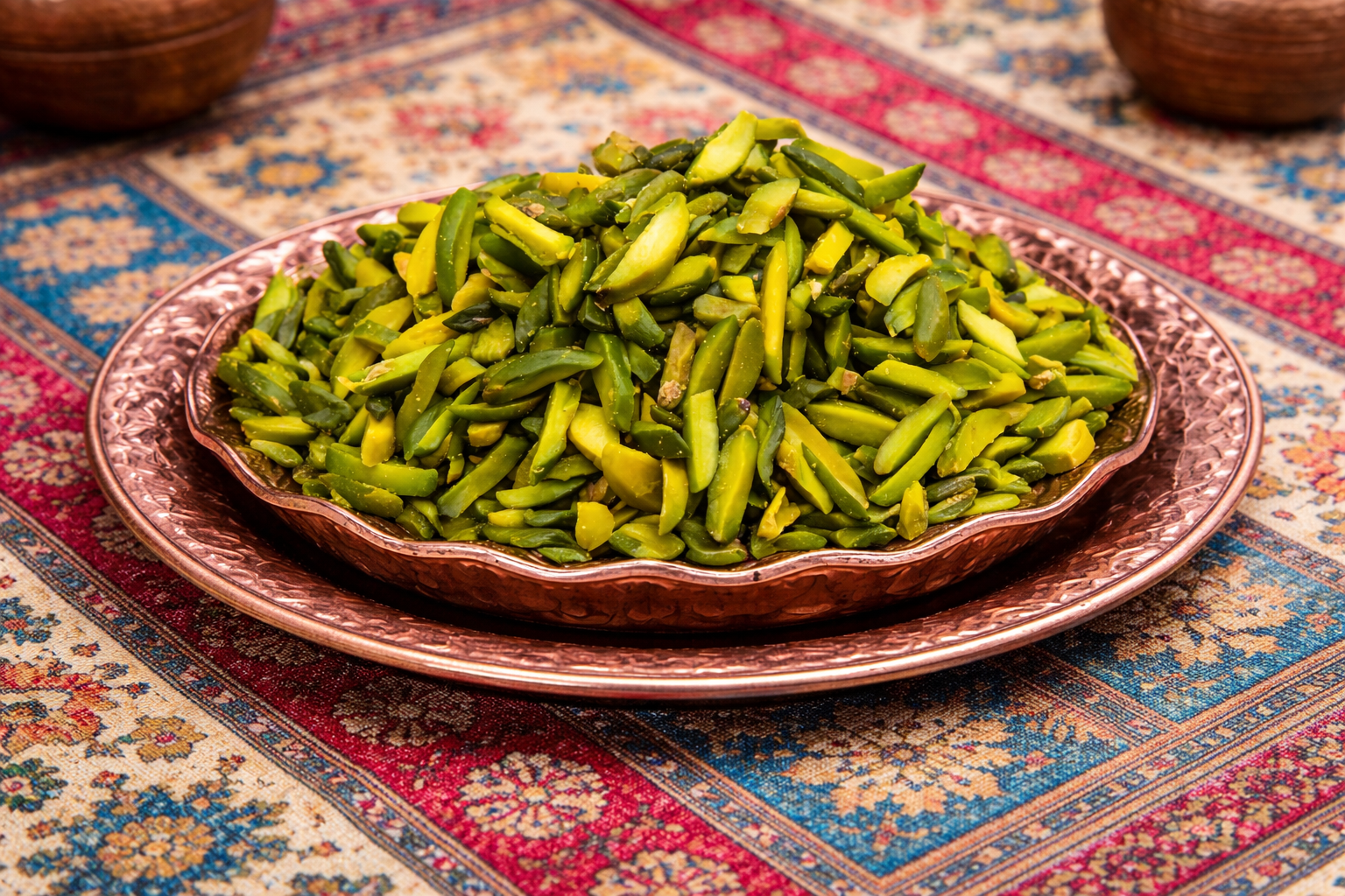 İnce ve homojen kesimi sayesinde baklava, kadayıf, pasta, çikolata, dondurma, lokum ve özel sunumlarda kusursuz dağılım, şık görünüm ve dengeli lezzet sağlar. Canlı yeşil rengiyle görsel kaliteyi artırır, aromasıyla tariflerinize değer katar. Siparişleriniz, tazeliğini koruyacak şekilde özel ambalajında hazırlanır ve hızlı kargo ile adresinize ulaştırılır.